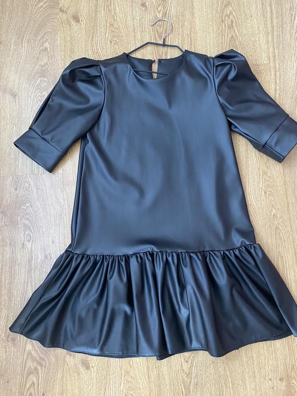 Платье для девочки из эко кожи.(не толстое)Длина 79 см,плечи 35,5 см, под руками 42 см