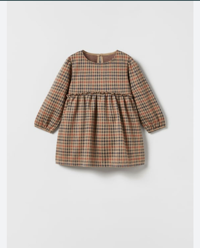 Сукня з круглим коміром і довгими рукавами. Виріз у вигляді краплі з ґудзиком ззаду, хвилясте оздоблення на поясі та еластична окантовка на рукавах. Ріст 104 см Ціна 700 грн