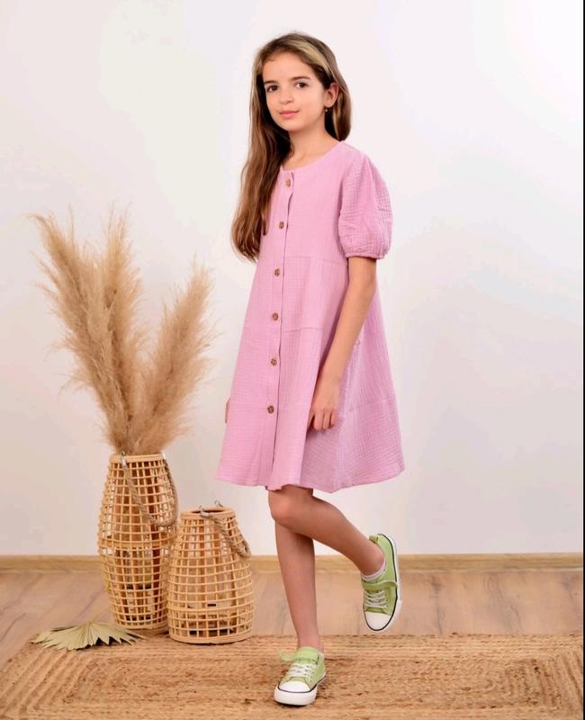 м В наличии🧡 Легкое летнее платье свободного кроя для модницы Ткань муслин Застегивается на пуговицы ВИДОВАЯ КАЧЕСТВО замеры: длина/пог 140-75/39 146-77/40 158-83/44 164-85/46 +-2 см