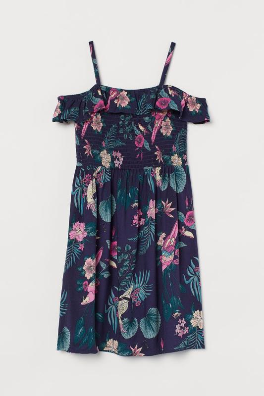 Платье с вырезом на плечах. Модель с присборенным телом, регулируемыми тонкими бретелями и резинкой с рюшами вверху. Без подкладки. 1109 11/12 лет (146/152) Вискоза 100%