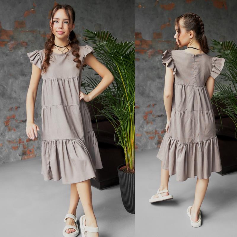 Платье для девочек тканина льон по спинке молния хорошего качества полномерные Рост/длина/пог Похибка +-2см 140-146/83/36-2шт 146-152/86/37-2шт 152-158/89/39-1шт 158-164/94/40-1шт 164-170/98/40-1шт