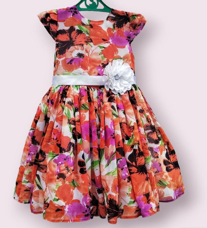 Длина: 54 см Полуобхват талии с ослабленным шнурком: 28 см Это прекрасное платье с цветочным принтом идеально подходит для маленькой девочки, которая хочет выглядеть лучше в жаркий день. Платье выполнено из мягкой, струящей ткани, которая идеально подходит для дня в парке или специального события. Платье имеет пышный фасон, который подчеркнет нежные формы маленькой девочки. Шнуровка на спине позволяет регулировать обхват талии, чтобы платье сидя было идеально.