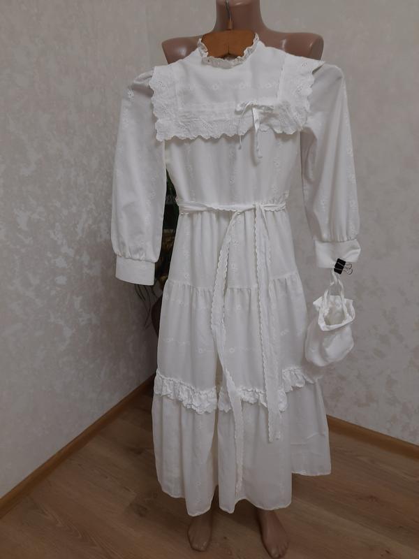 Невероятно милое платье из прошвы Ярусное, на подкладке.С нежным пояском и с винтажным кисетиком.Застегивается сзади. Замеры: ПП 29 ПГ 35 ПТ 31 Длина 112 Рукав 49