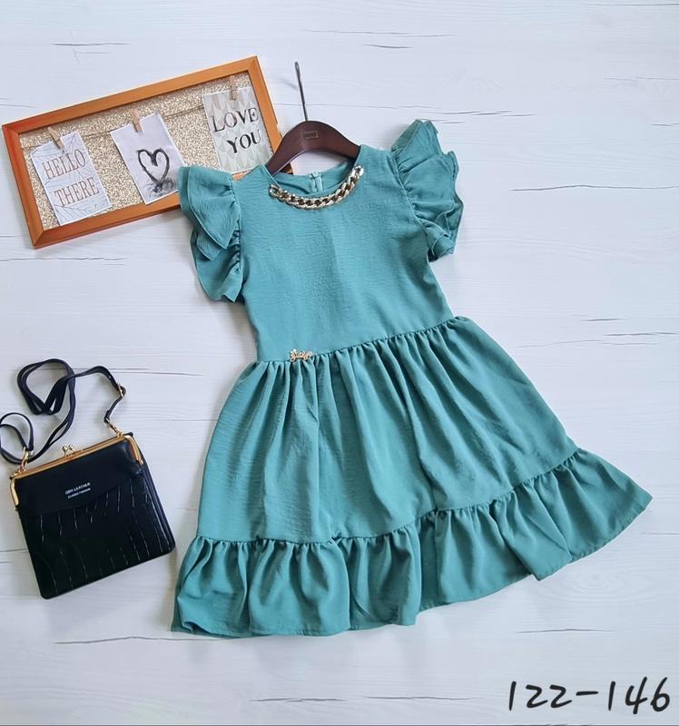 Легкое праздничное платье для девочки тканина супер-софт украшен цепочкой очень нежное Рекомендую!!! 122(1 шт)-длина 63, пог 29 128(1 шт)-длина 66,пог 30 134(1 шт)-длина 69, пог 31 140(1 шт)-длина 72, пог 32 146(1 шт)-длина 74, пог 34 +-1 см