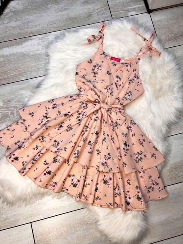 Воздушное летнее платье на бретельках Стильный принт Поясок в комплекте Бретельки завязываются тканина супер софт Рекомендую Длина от горловины/пог 140-62/35 146-63/36 152-64/37 158-66/38 164-70/39 ÷