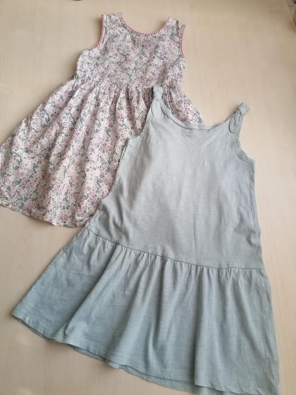Одним лотом фирменные платья на девочку 5-6 лет. Состояние очень хорошее, без дефектов Цена за два 165грн. Ментоловый сарафан H&M,трикотаж, длина 59,ширина под руками 30, внизу перед оборкой 37. Цветное платье Primark, тонерожный хлопок, интересно выполнено на спинке, длина 59,ширина под руками 28 (тянется,резинка сзади),в талии 30.