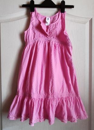 Отличное платье на летнюю жару от Palomino в идеальном состоянии. Размер на рост 128см. Тканина 100% бавовна Гудзики прячутся во внутреннюю потайную планку. Сбоку есть застежка молния. Замеры: плечи 24см под ручками 23см длина 68см Дополнительные фото или замеры по необходимости.