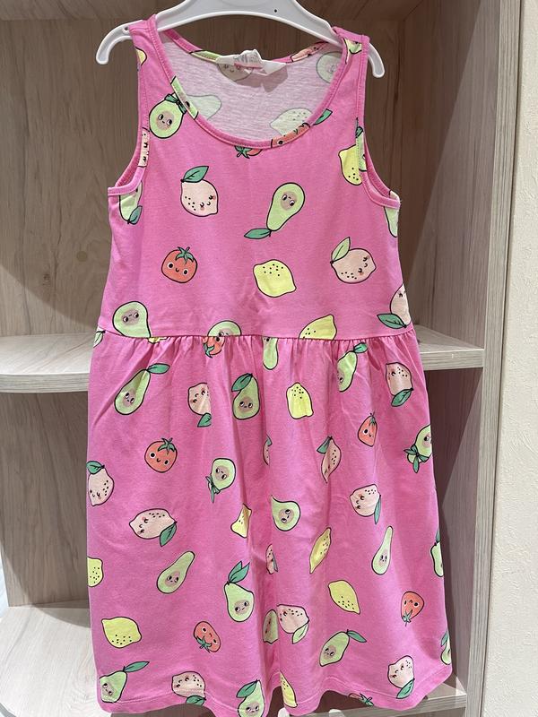 Летнее платье/платье H&M с пальмами и фруктами. Размер - 6-8 рочков. С пальмами имеет точечные незаметные пятнышки - С фруктами