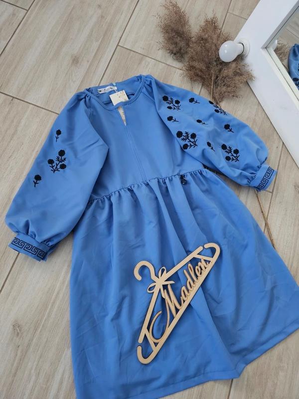 Сукня "Азалія" тканина тонкий тіар, має легенький стрейч, вишивка на рукавах та манжетах, по спинці потайна блискавка, в бічних швах- кишеньки. Кількість обмежена,повтору не буде. ПОВНОМІРНІ Зріст 140-146 146-152 152-158 158-164 164-170