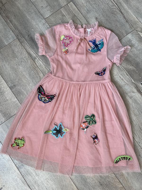 Сукня Next для дівчинки від 8 років, на зріст 128 см і вище. Стан прекрасний. Дуже ніжна та гарна. Плечі - 29 см Ширина по поясу - 33 см Довжина повністю - 72 см Довжина спідниці - 45 см