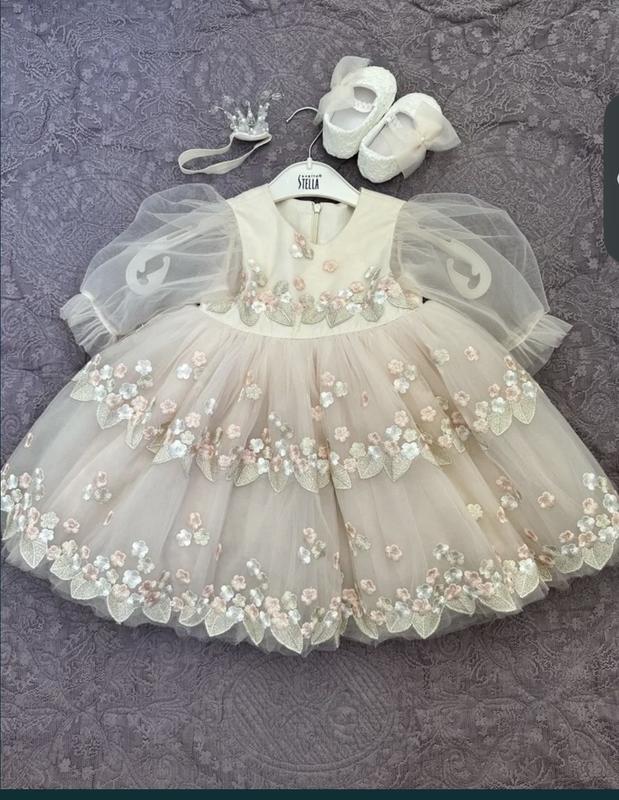 Неперевершена сукня на рочок. Шили у швачки. Стан ідеальний. У подарунок прикраса на голову у виді корони з камінчиків на м’якій резинову та дуже гарні нарядні пінетки