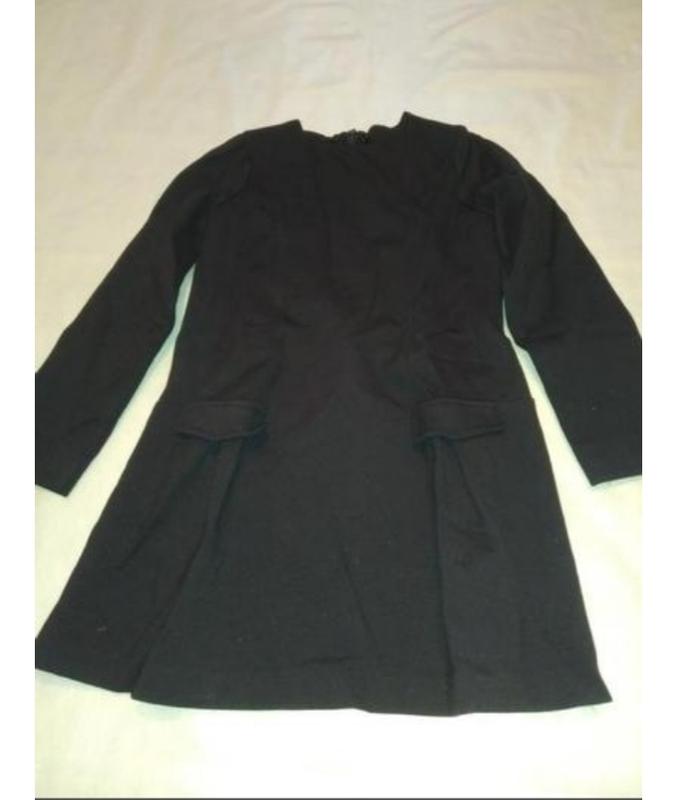 Шкільне темно-синє плаття З внутрішньої частини по периметру вирізу ґудзики, що дає змогу пристебнути будь-який комір Віскоза та нейлон, тканина щільна та добре тягнеться Довжина 60 см В ідеальному стані З усіма додатковими питаннями звертайтеся в будь-який