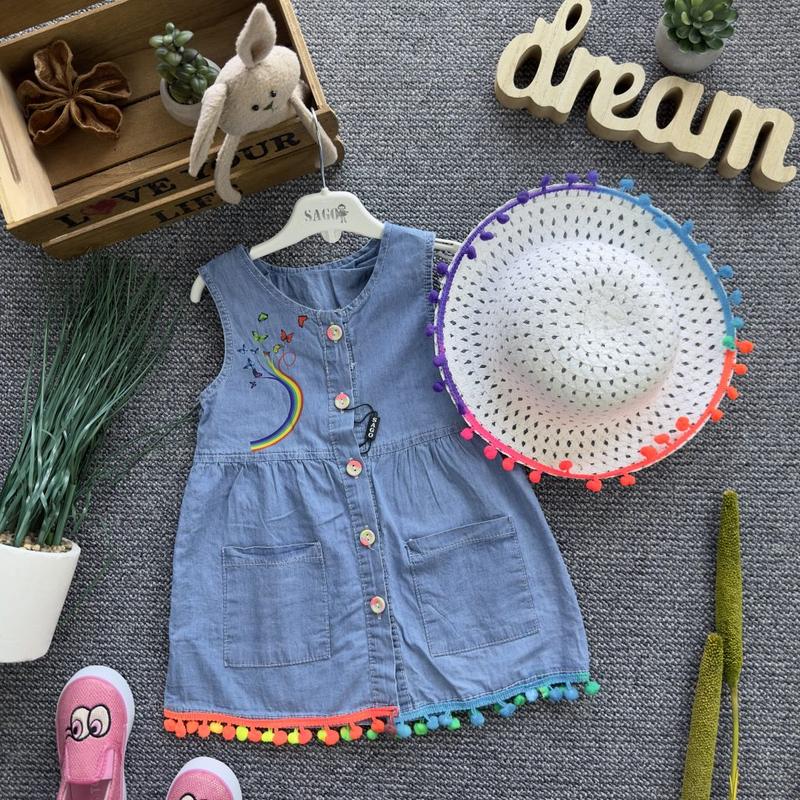Яркое, легкое платье невероятного качества! Производство Турция! Материал: джинс! В комплект входит очень изящная шляпка украшена в цветах платья! Размеры: 2р – длина 43 / полуобхват талии 30 3р – 46 /31 4р – 49 /32 5р – 51 /33