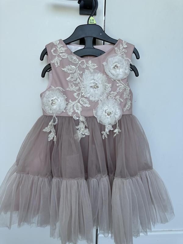 Платье в отличном состоянии, размер 110, одето раз в выпускной в садик.Пышное, с красивым цветочным кружевом и домами.