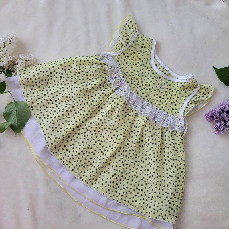 Легкое платье с коротким рукавом и узором звездочками. Идеально подходит для особых событий, на подарок, для фотосессии. Размер 56 (рост 92-98 см)
