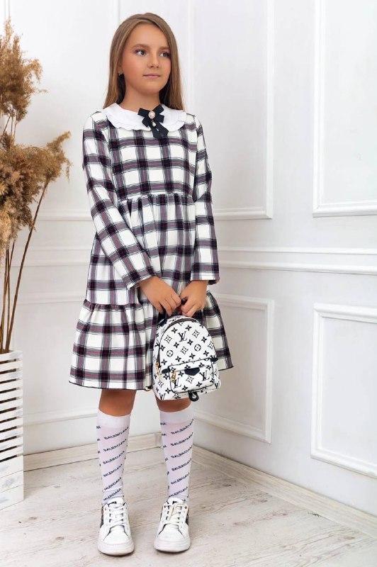 Размеры: 128, 134, 140, 146, 152. Ткань: креп костюмный Турция. На руках манжети Брошь емкая Платье имеет свободный крой, отлично отходит на любую фигуру Полномерные, подбирают по росту