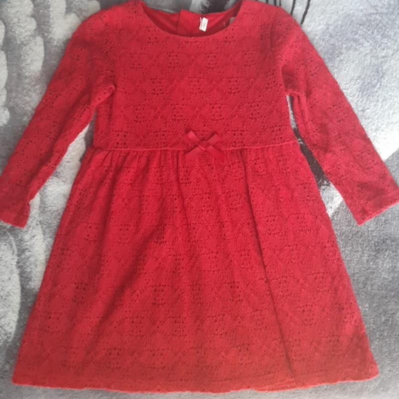 Гепюровое платье красного цвета на рост 98-104. Стан идеален, одевали несколько раз.