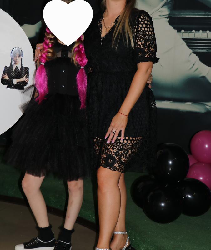 Продам 2 платья для вечеринки "Венздей".Платье для мамы,размер 42-44 платья дочки 146 см.Шилы на заказ, одели 1 раз.Бельше фото по запросу