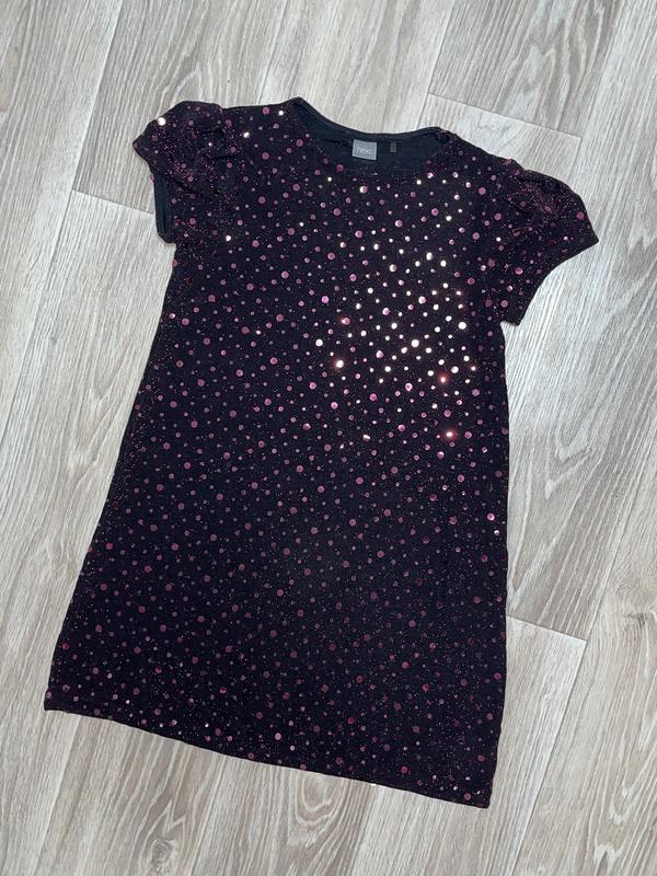 Черное платье с розовым люрексом и блестками Состояние новое 🏷️Next 9 лет/134 Длина 70. ПОГ 37