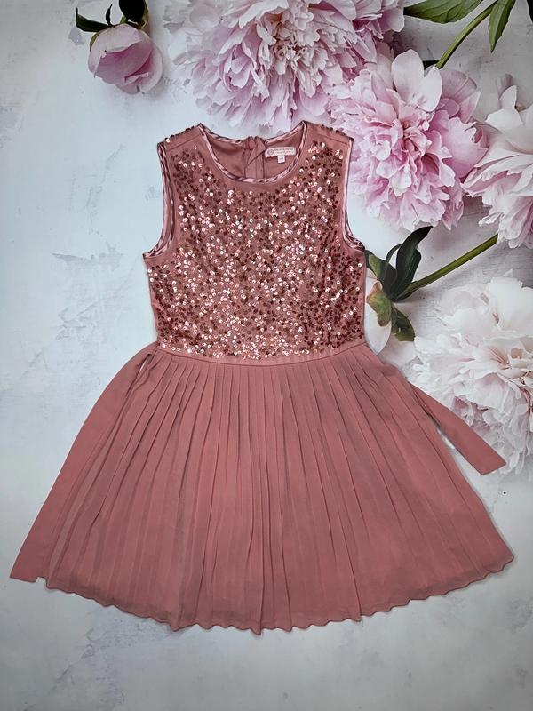 Платье с пайетками Подкладочная ткань полиестер Застегивается сзади на змейку Есть поясок, завязывается бантом Состояние идеальное 🏷️C&A 10 лет/140 Длина 72(33). ПОГ 35
