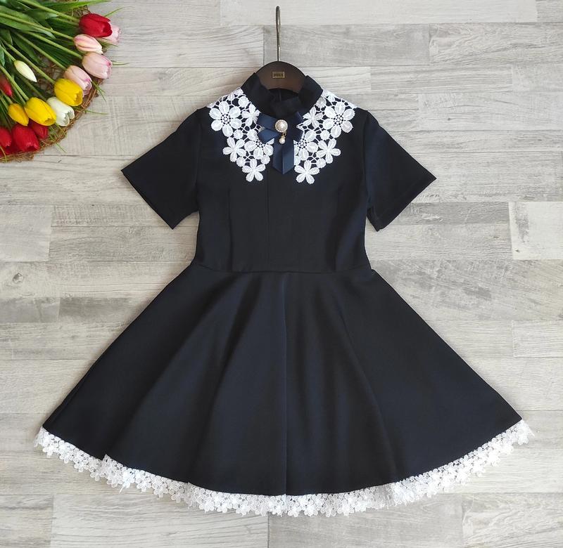 м 🧡В наличии🧡 Отличное школьное платье украшена кружевом воротник стойка очень эффектно смотрится на ребенке РЕКОМЕНДУЮ замеры: длина/пог 122р-61/28 134р-70/32 146п-76/37 +-2см