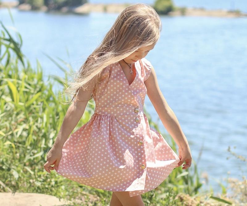 Детское платье, хлопковое, на спинке резиночка,металлические пуговицы, выполненная на запах