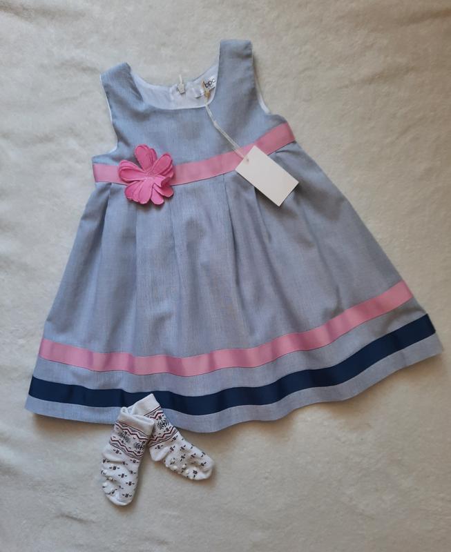 Платье новое на девочку 13 - 18 месяцев. Рост 86 см. Производитель bpc. Тканина бавовна. Платье на тонкой хлопковой подкладке. Застегивается на спине на молнию. Носочки новые без етики - 40грн. По стопе 9см. Растяжимые по стопе до 15см.