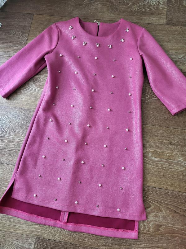 Очень красивое платье на девочку 8-9 лет, Длина спереди 69 см, по спинке длиннее 74 см, рукав 3/4 -33 см. Бусинки пробиты. Ширина 40 см.