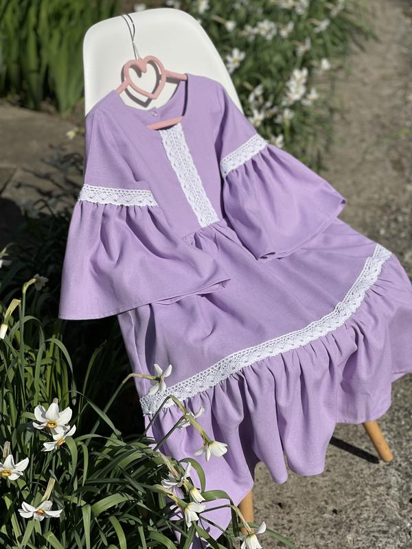 Платье из льна и кружевом лавандовое