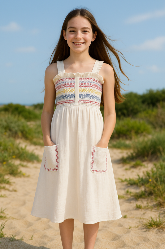 Сарафан Stella McCartney, що нагадує вінтажні дитячі моделі минулого, стане ультракомфортним доповненням до міжсезонних та літніх образів завдяки дихаючій тканині з чистого мусліну. Барвиста вишивка, ліф з рюшами та воланами надають виробу ще більшої привабливості. Пара милих кишень та застібка на гудзики – ідеальна річ для святкового образу, яку можна використовувати як накидку для пляжу чи басейну. Особливості продукту • Еластична бавовна • Екологічний Ідеально підходить для повсякденного стилю • Вишита обробка. • Оборки Деталізація кнопок. розмір від виробника на вік 14 років довжина 116 см груди 35 см + тягнеться на резинці талія 37 см + тягнеться на резинці в бедрах вільно в складі: 100% бавовна 💳💸оплата на карту , передплата, безпечна оплата 🚚Доставка: укр поштою🐌 новою поштою🚀