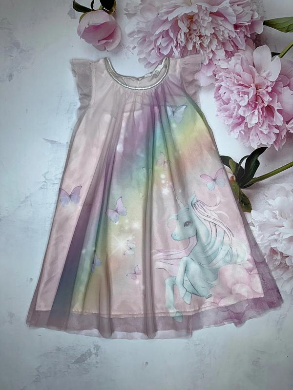 Платье из Фатина с рисунком Подкладочная ткань полиестер Состояние идеальное 🏷️H&M 7-8 лет/128 Длина 69. ПОГ 35