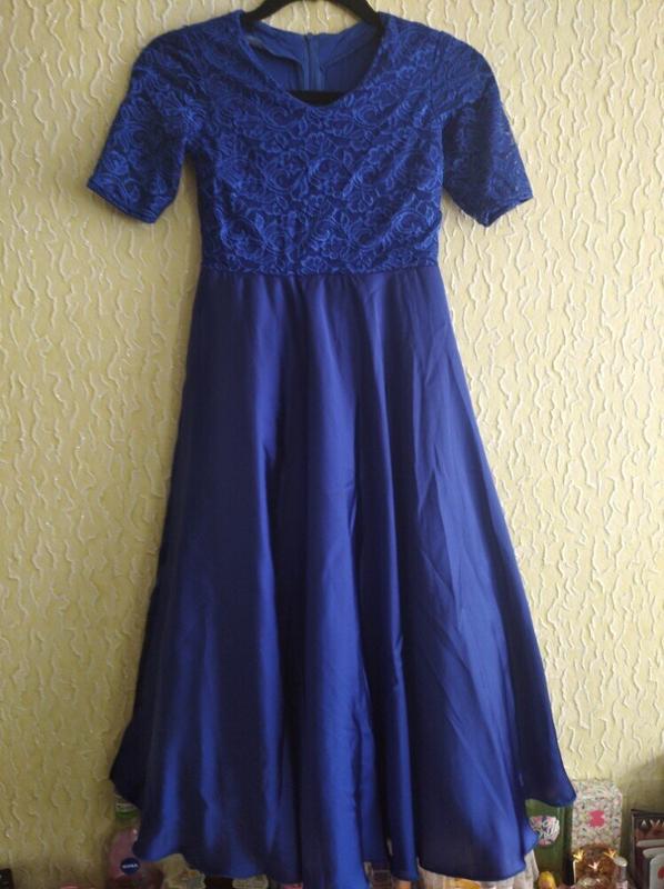 Нарядное красивое платье на девочку ,на утренник, выпускной . Цвет - электрик и внизу под юбкой белая сетка. ПОГ 32 см. Ширина плеч 28 см. Длина платья по середине спинки 92 см. Единственный дефект в платье по низу юбки с левой стороны ( на фото показано),как будто платье попало под дверцу машины и остался след....
