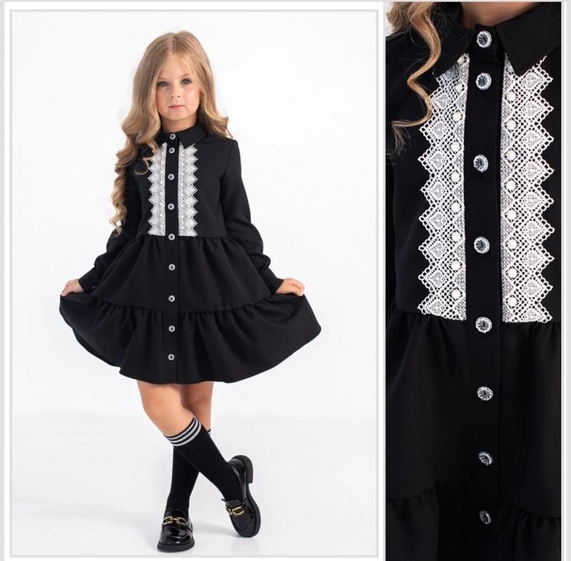 Невероятно красивое школьное платье 💞 Тканина: костюмний текстиль Черный цвет Длина / пог / рукав от плеча 116- 59/32/40 Нг
