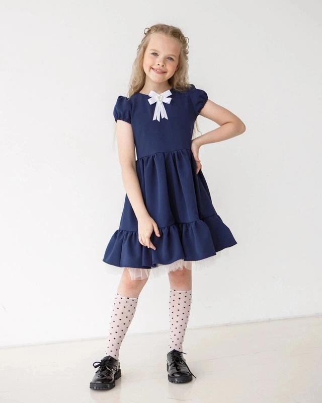 Ландиш В НАЯВНОСТІ Ніжне шкільне пляттячко темно-синього кольору Тканина тіар Брошка знімається РЕКОМЕНДУЮ!!! 116(4 шт)-довжина 62,пог 29 122(3 шт)-довжина 65,пог 30 128(2 шт)-довжина 68,пог 31 134(3 шт)-довжина 71,пог 32 140(3 шт)-довжина 74,пог 33