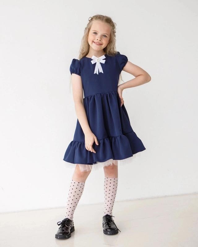 ландиш В НАЯВНОСТІ Нежное школьное бутылечко темно-синего цвета Ткань тиар Брошь снимается РЕКОМЕНДУЮ!!! 116(4 шт)-длина 62, пог 29 122(3 шт)-длина 65, пог 30 128(2 шт)-длина 68, пог 31 134(3 шт)-длина 71,пог 32 140(3 шт)-длина 74,пог 33