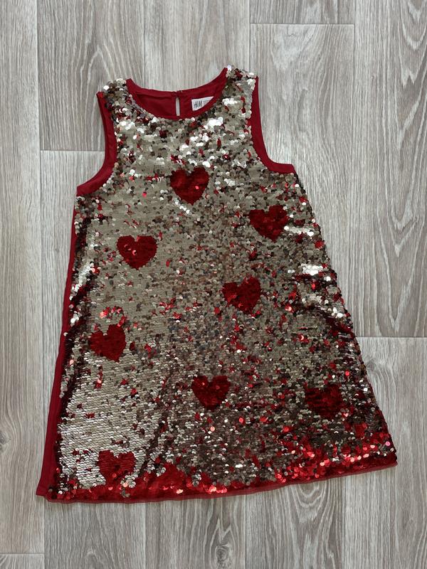 Платье с пайетками Сзади без пайеток Пайетки интерактивные Цвет красный/серебро Состояние отличное 🏷️H&M 8-9 лет/134 Длина 69. ПОГ 35