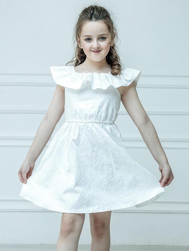Платье с воланом. Талия на резинке. Очень красивая праздничная ткань с жаккардовым рисунком. Идеальна на прогулку. 100% Бавовна