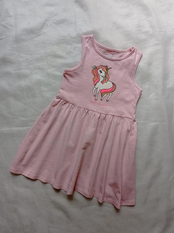Платье летнее розовое с единорогом 3-4 года, р. 98-104 см