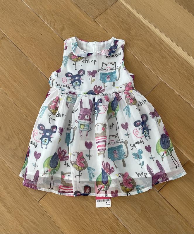 Платье для девочки по этикетке на 5-6 лет, длина 52 см,ПОГ 29 см,плечи 22 см, взади замок