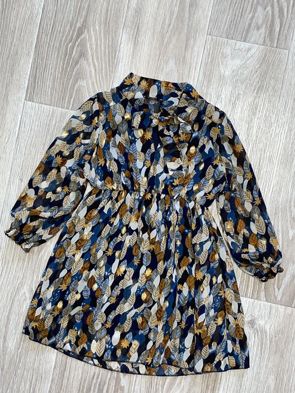 Очень красивое в живую, платье с перьевым принтом. Подкладочная ткань полиестер Верхняя ткань легкая, как шёлк Состояние идеально 4 года Длина 57(22). ПОГ 31. Рукав 33-34