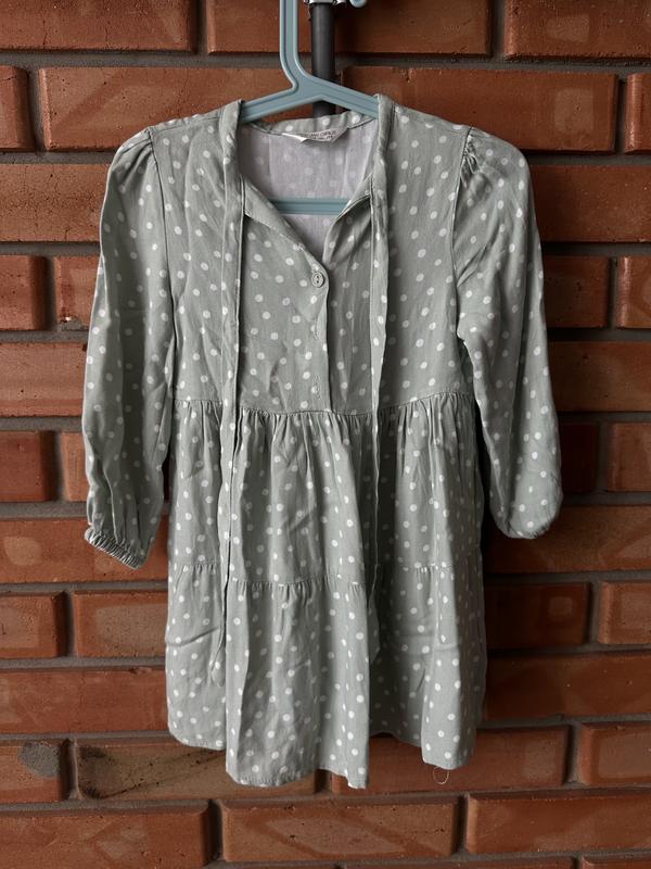 Длина 58 см. Красивое платье, облачили 2 раза, тонкая легкая ткань. По наборке 104 см. Бренд боярышника джинс.