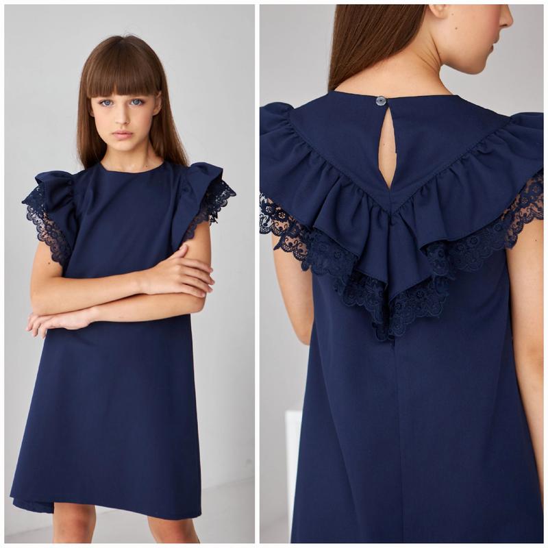 Симпатичное платье украшена кружевом тканина костюмка силуэтный покрой РЕКОМЕНДУЮ! 134(1 шт)-длина 69,пог 39 140(2 шт)-длина 71,пог 40 146(2 шт)-длина 74, пог 41 152(2 шт)-длина 76, пог 42 158(2 шт)-длина 79, пог 44 +-1 см Цена 600 грн