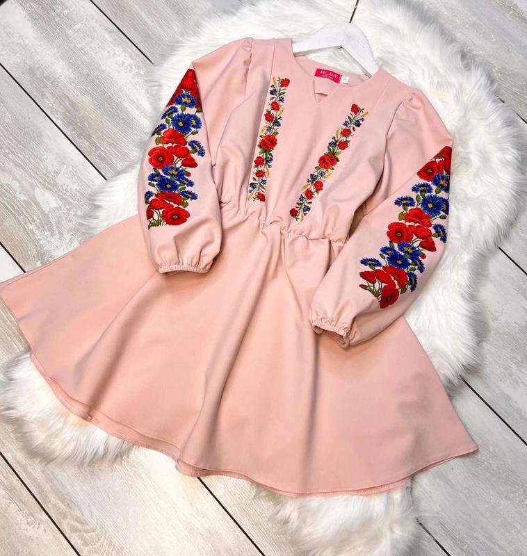 Арт 3229 сукня вишиваночка ткань тиар в талии и в рукавах есть резиночка, рисунок на платье термо наклейка хорошее качество Длина платья/рукав от плеча/пог 140-67/49/37 158-75/57/42 164-78/59/43 Тан