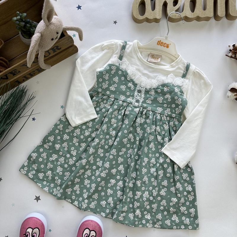 Платье производства Турция. Качество- люкс. Имитация сарафана. Свободный крой. Высококачественный трикотаж. Размеры: 92 – рукав 29/ длина 47/ полуобхват 25 98 – 30/42/52/26 104 – 33/54/29 110 – 34/57/30
