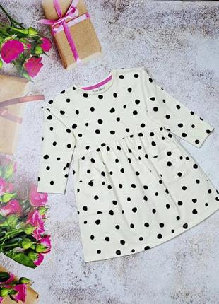 Белое трикотажное платье в горошек на 2-3 года С карманчиками Шир 31 Длж 54 Рукав спущенный 42