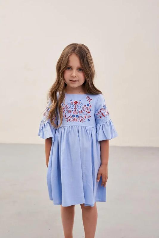Вышитое платье для девочки стильного свободного кроя, с модными воланами Выполнено на качественной натуральной ткани, в составе 55% хлопка и 45% льна Вышито платье-вышиванка машинной вышивкой, аккуратной, яркой, цветочным орнаментом Размеры на рост: 110 см К платьям имеем веночки в продаже!