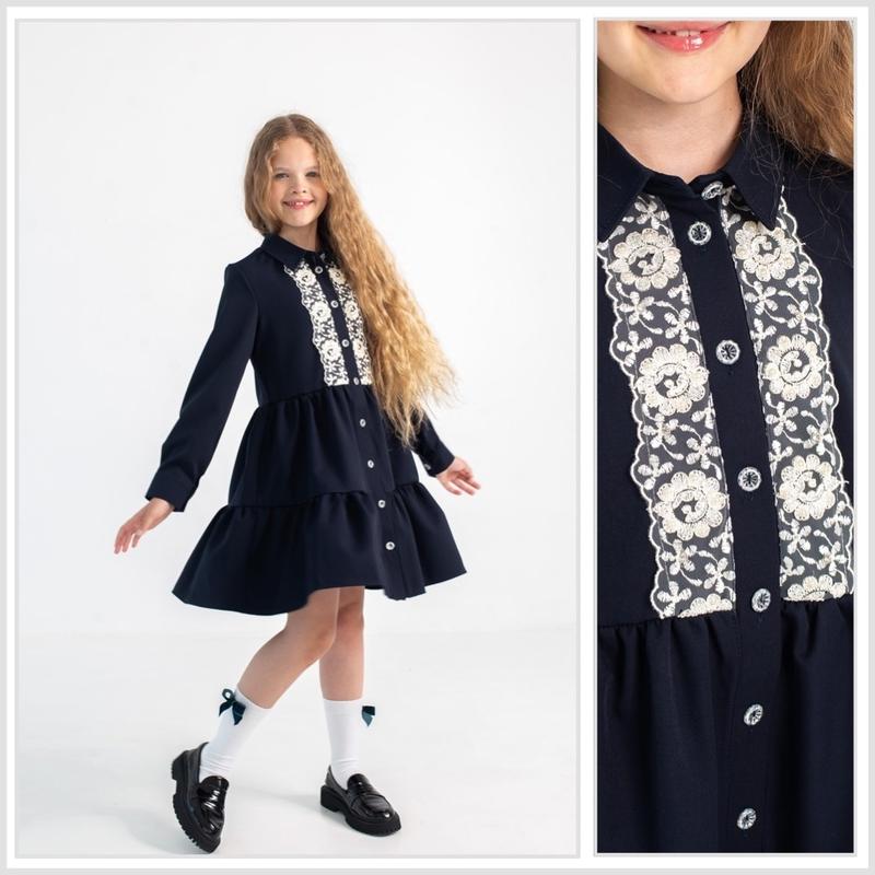 В наличии Невероятно красивое школьное платье Тканина: костюмний текстиль Синий цвет Длина / пог / рукав от плеча 116- 59/32/40 128-66/35/43 134-68/37/46 140-71/39/48 D&S