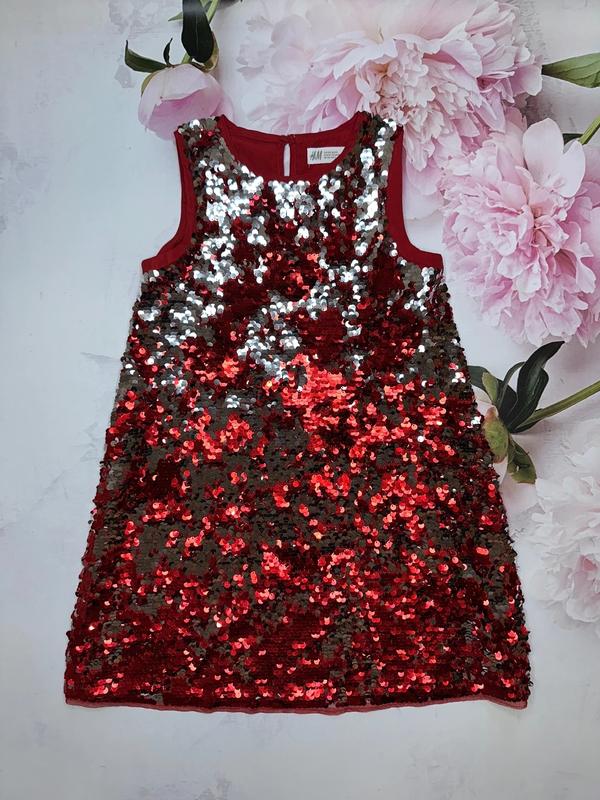 Платье с пайетками Сзади без пайеток Пайетки интерактивные Цвет красный/серебро Состояние отличное 🏷️H&M 8-9 лет/134 Длина 69. ПОГ 35