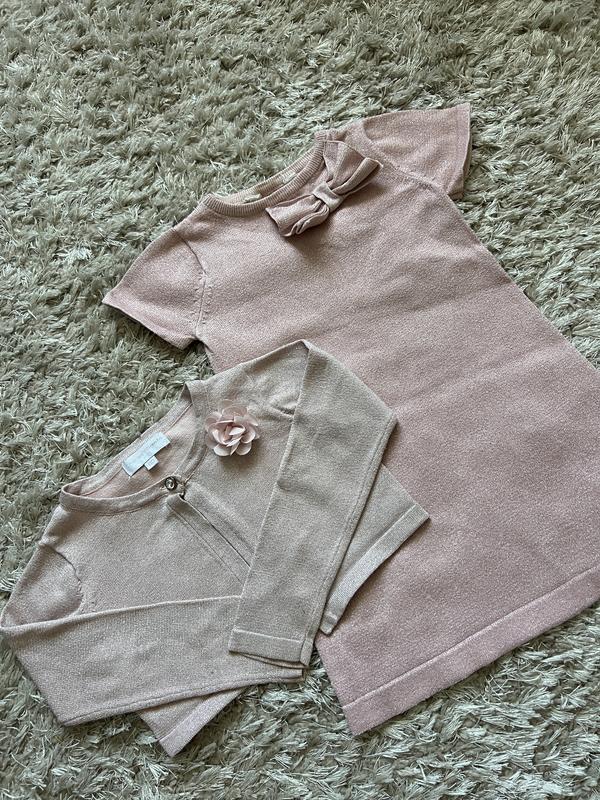 Платье и накидочка с блестящей нитью. Цвет немного отличается, это не комплект. Но выглядит красиво
