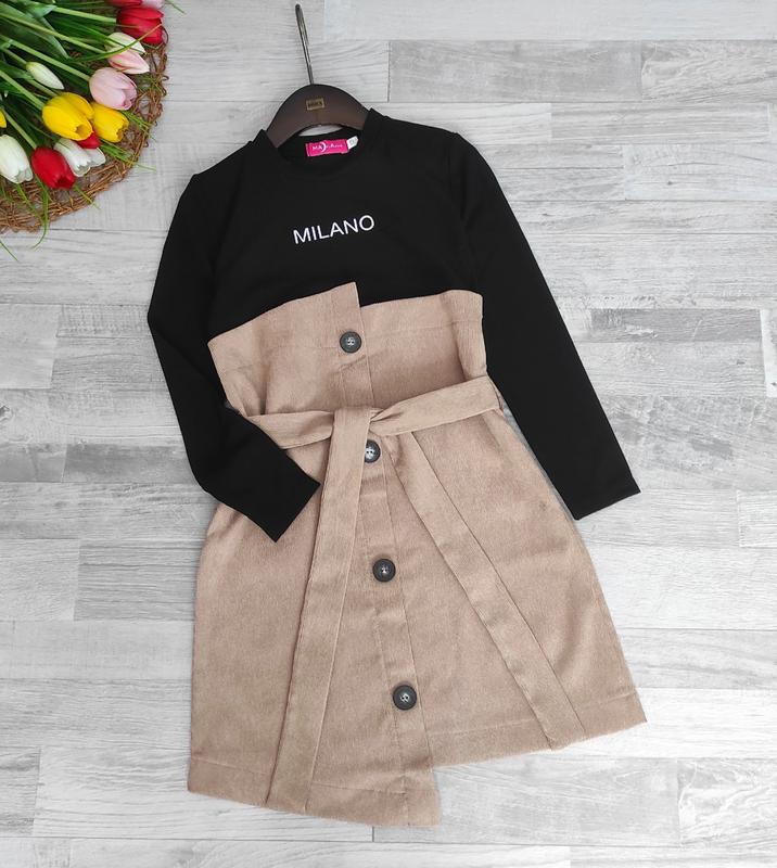 🧡В наличии 🧡 Стильное платье верх -мустанг рубчик низ- микро вельвет поясок в комплекті ГАРНАЯ КАЧЕСТВО Цена 670 грн замеры: длина/пог/рукав от плеча 128-63/33/43 134-67/35/46 140-72/37/48 146-75/39/51 152-78/40/55 +-2см 128-1шт 134-1шт 140-1шт 146-1шт 152-1шт